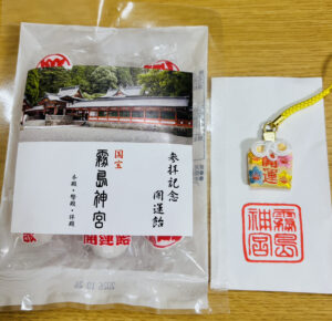 (国宝指定もされている霧島神宮の開運お守りと開運飴のセット)